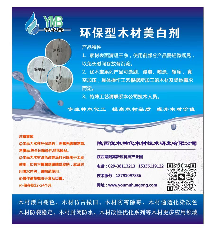 一、产品介绍:竹丝竹签竹制品除霉漂白剂是陕西优木林化木材技术研发有限公司新开发的一种新型漂白剂,它具有去除蓝变,红色变,氧化色为一体的漂白剂,处理过后的竹制品表面干净清爽颜色统一,自上市以来得到老客户很好的口碑,在使用成本上是目前竹制品漂白较低的一种,处理过后的竹制品表面无化学残留.